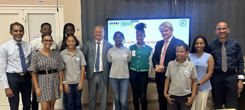 Dans le cadre du dispositif PHARE, programme national de prévention et de lutte contre le harcèlement scolaire, le collège a eu le plaisir d’accueillir Monsieur Gabriel Fioni, Recteur de la Région Académique de la Guadeloupe, ainsi que le Vice-recteur, Monsieur Harry Christophe et leurs délégations, le vendredi 9 janvier 2026.